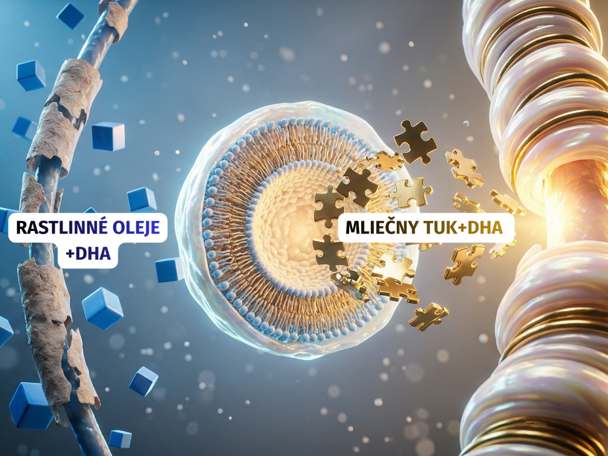 DHA je dôležitá, ale bez mliečnej matrice (MFGM a sfingomyelínu) nedokáže plne budovať myelínovú izoláciu nervov.